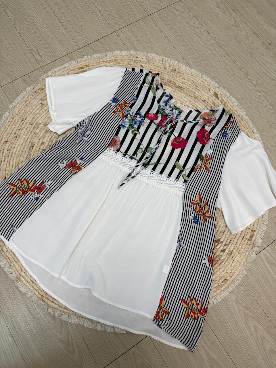 Blusa de fibrana con broderie incluido. Talle amplio. Se envia surtido.