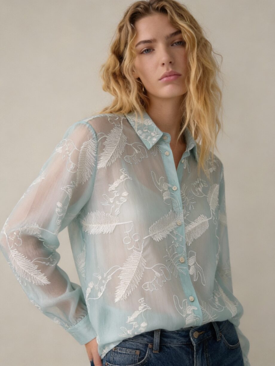 Camisa Importado. GASA-SEDA BORDADA. Talle M y L