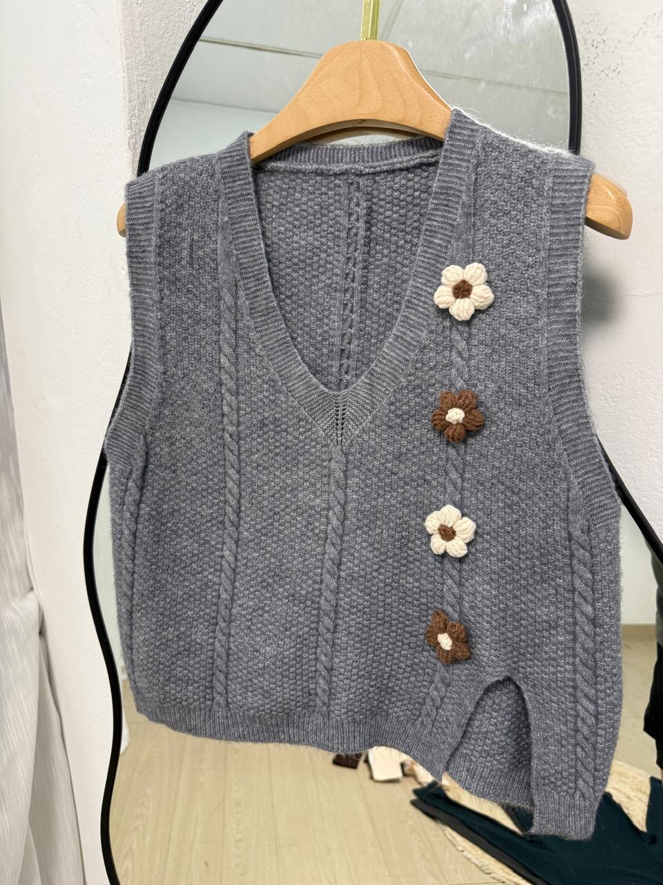Chaleco calidad premium. Detalle con florcitas y tajo en el costado. Talle unico.