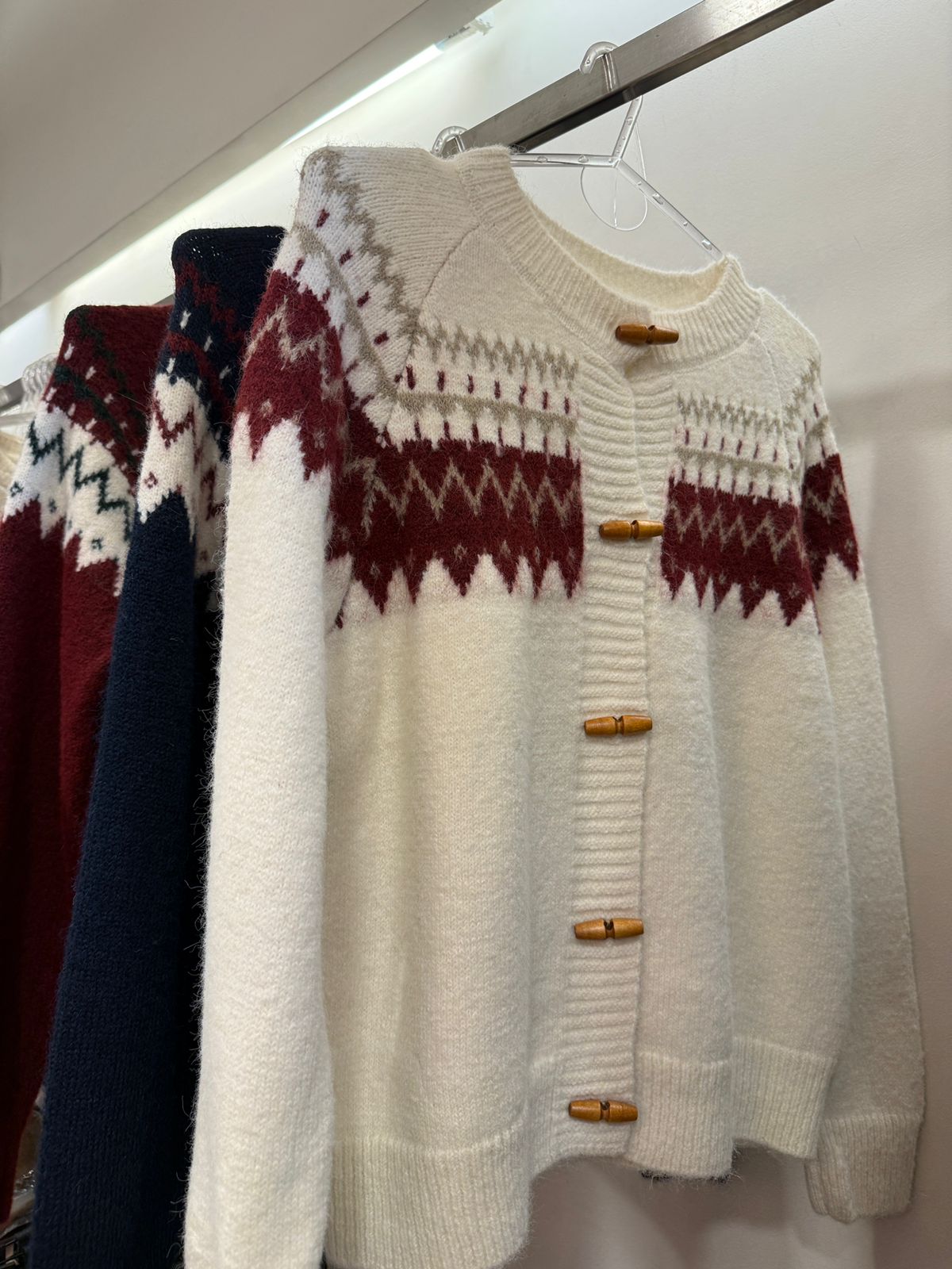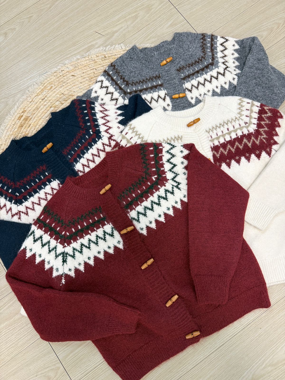 Saquito estilo bariloche. Broche de maderas. Talle unico