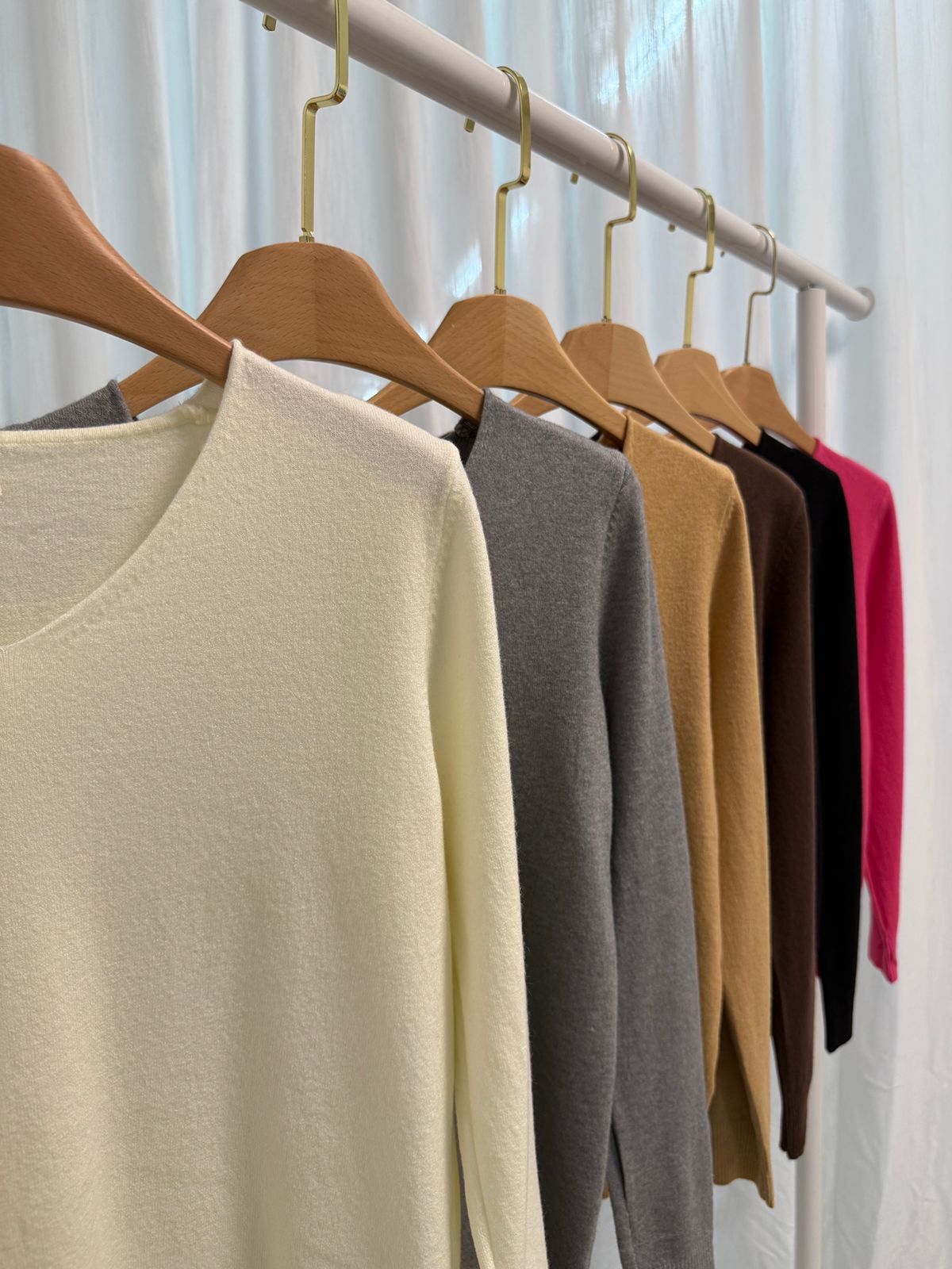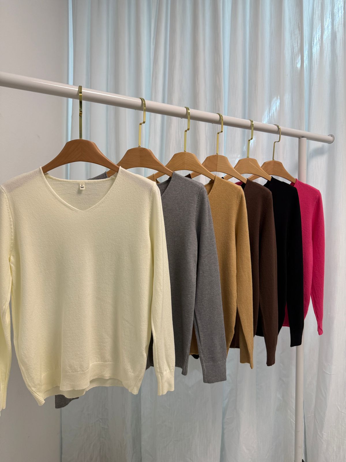 Sweater importado con cuello v liso. Talle único