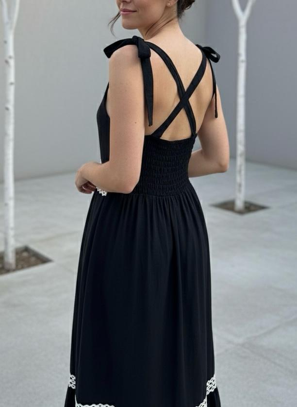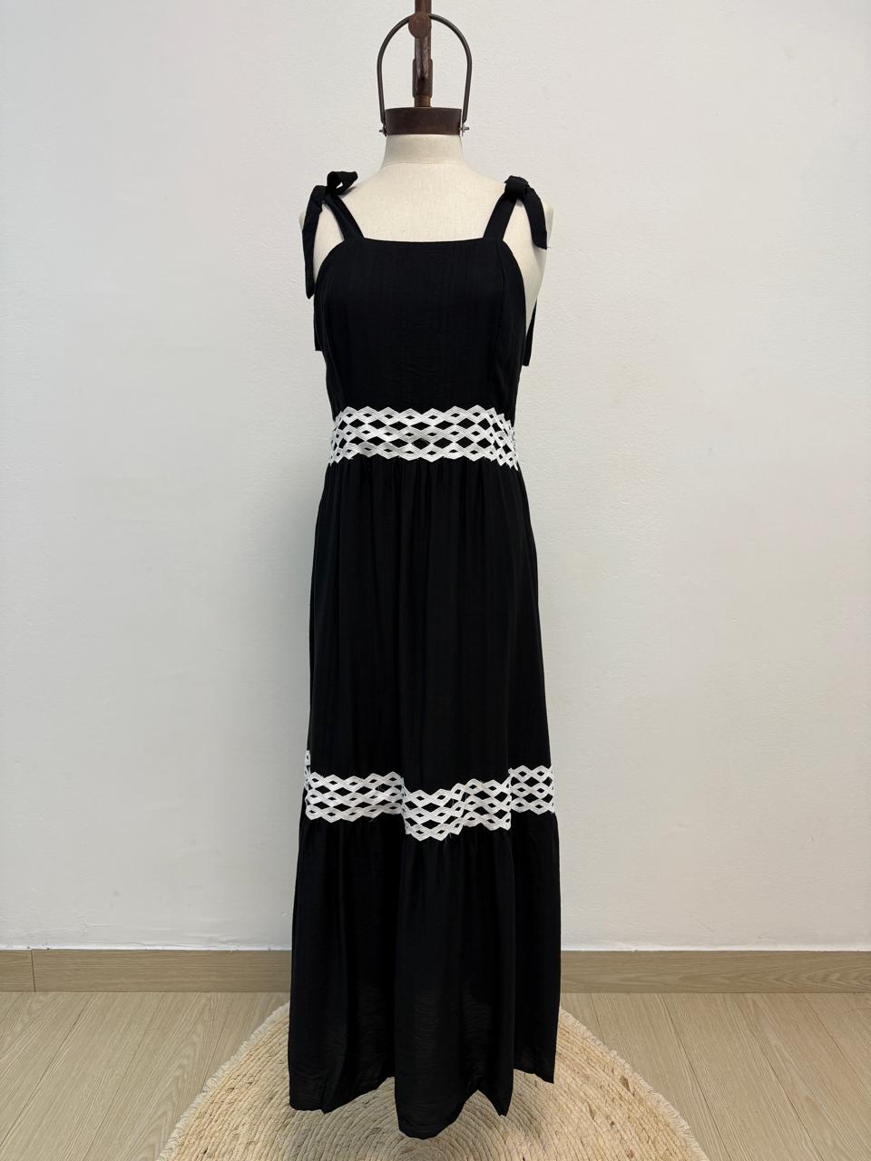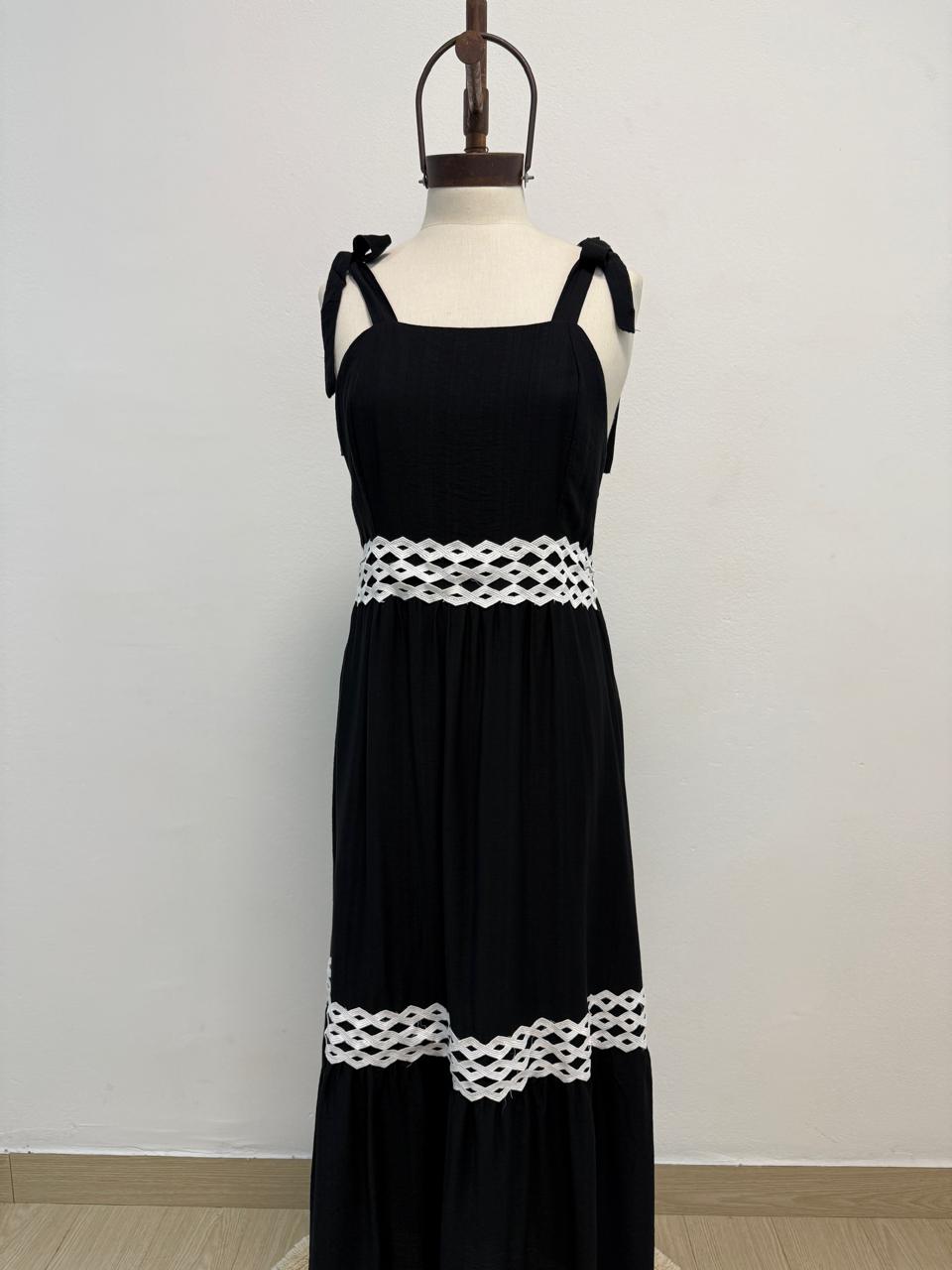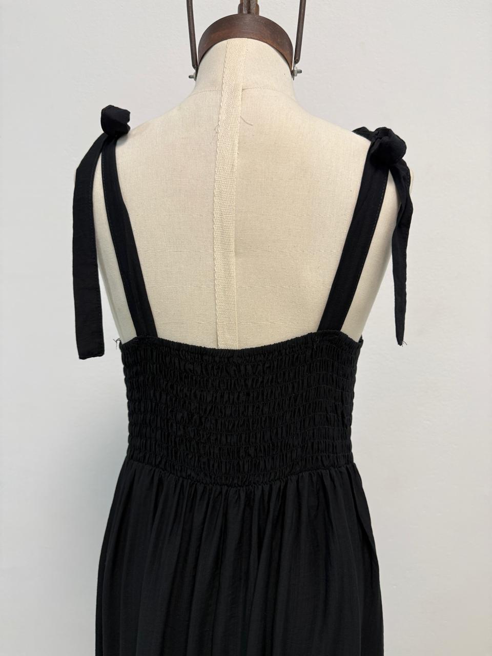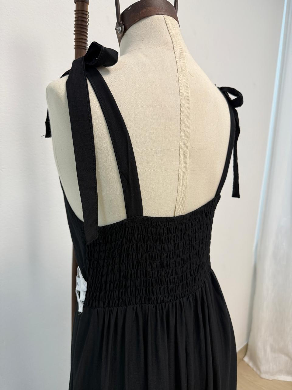 Vestido de lino importado con detalle en la cintura. Cinto ajustable y elástico en la espalda. Talle M y L. Color blanco con doble capa en el interior.