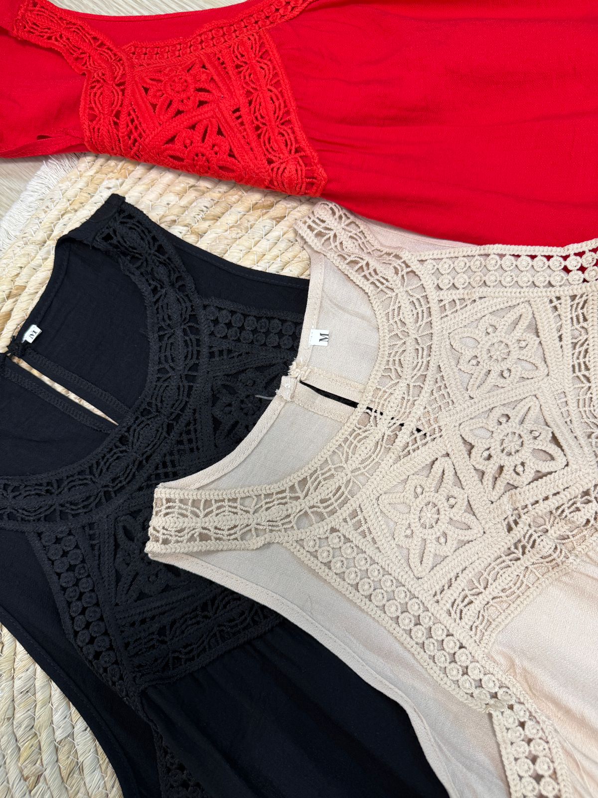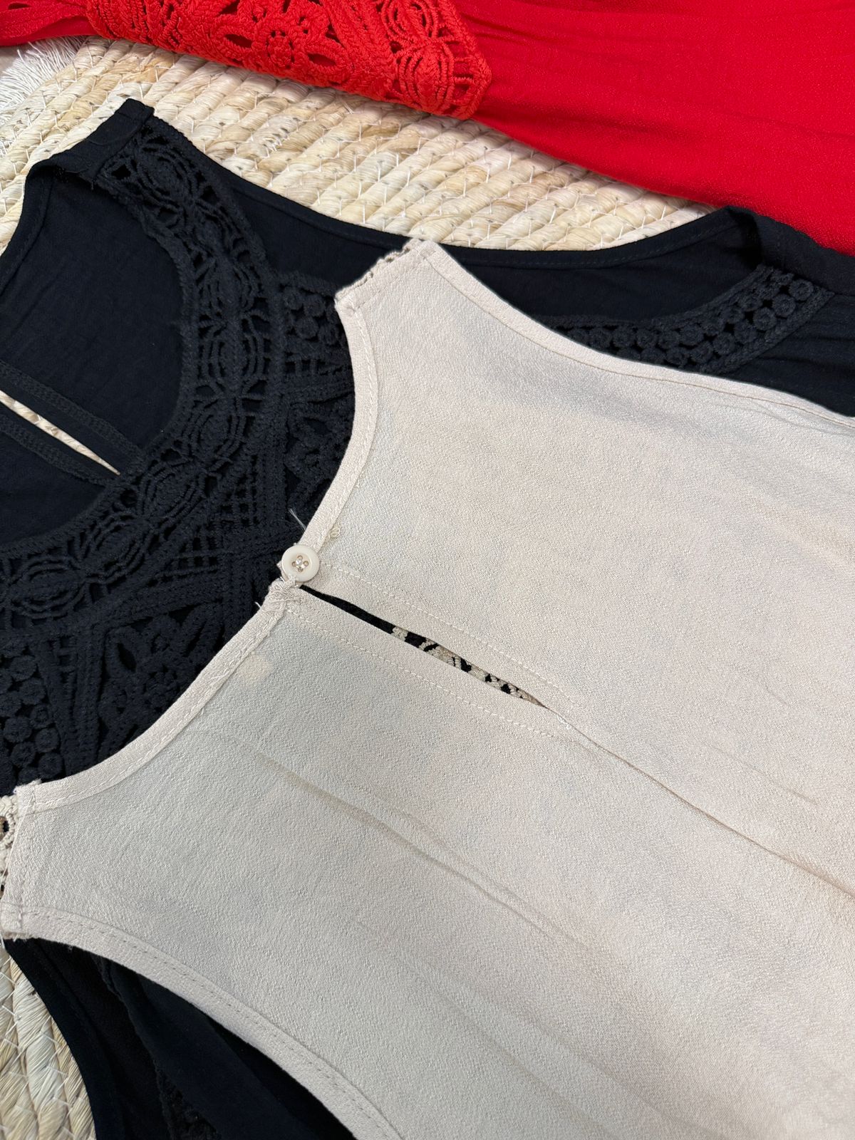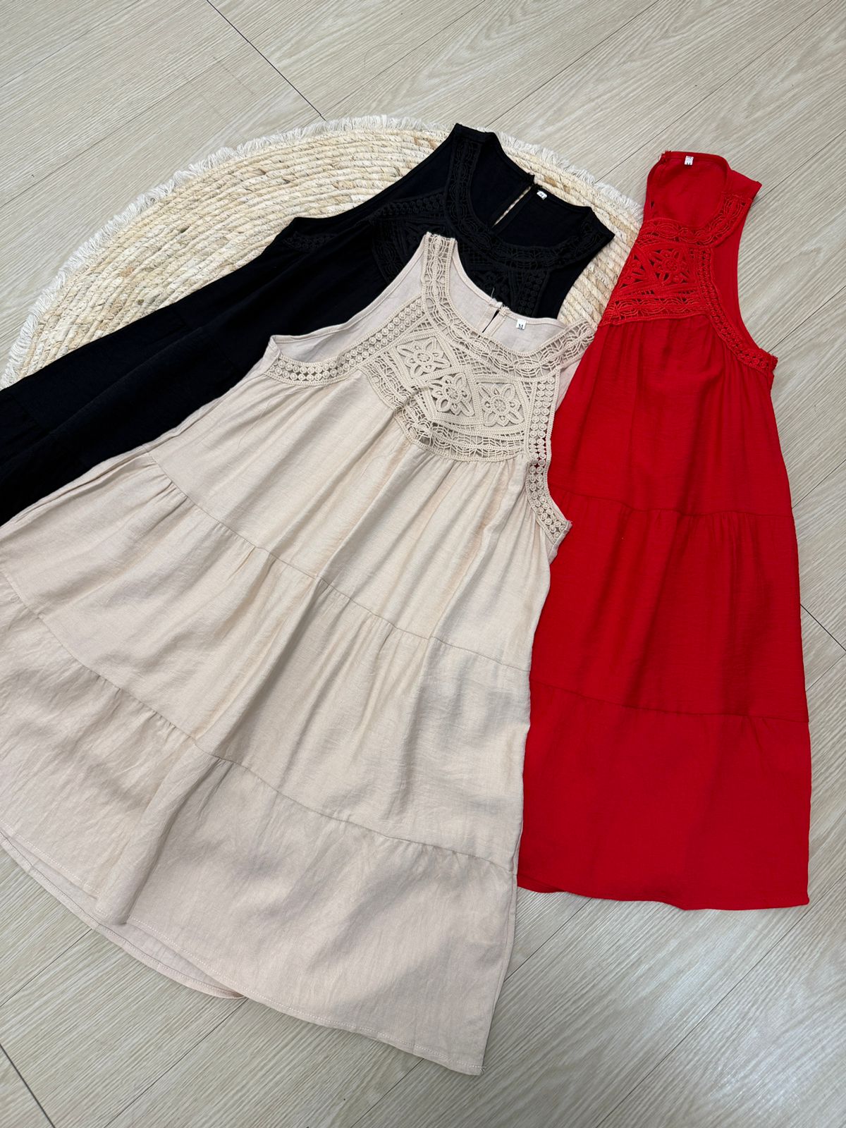Vestido de lino importado con detalle en crochet. Talle M y L.