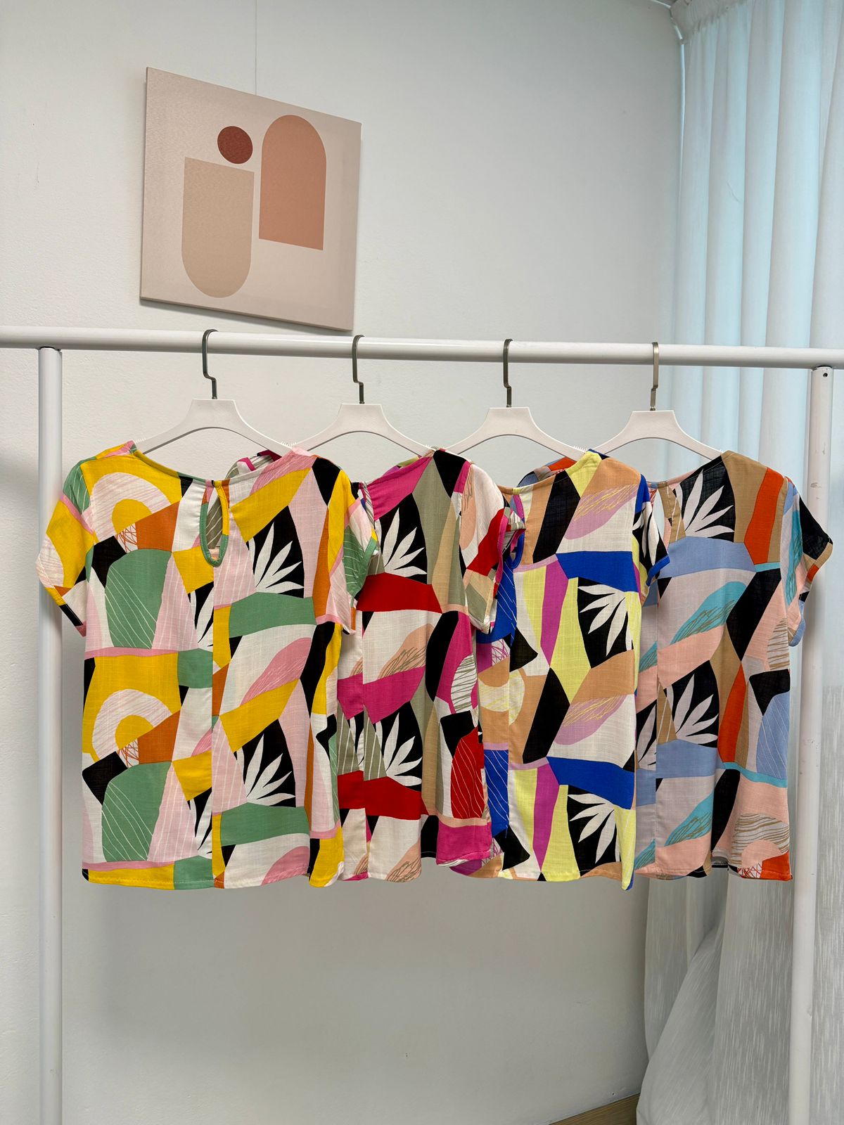 Blusa de simil lino estampada con mangas voladas y detalle en la espalda. Talle 2 y 4