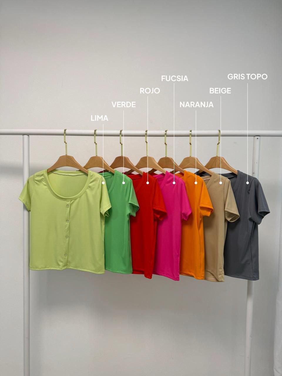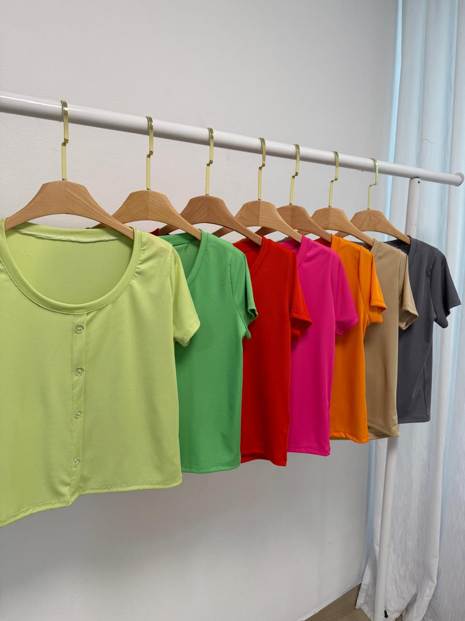 Remera basica, ribb baston fino con botones. Talle unico