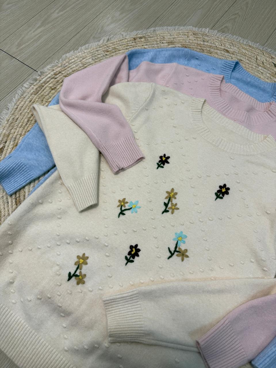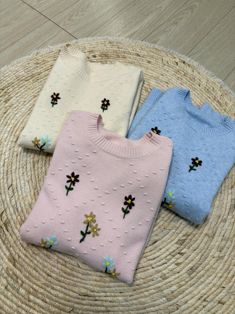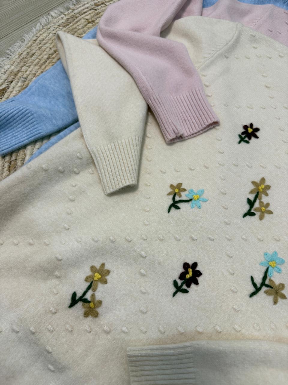 Sweater importado. Detalle en bordado. Cuello redondo. Talle unico.
