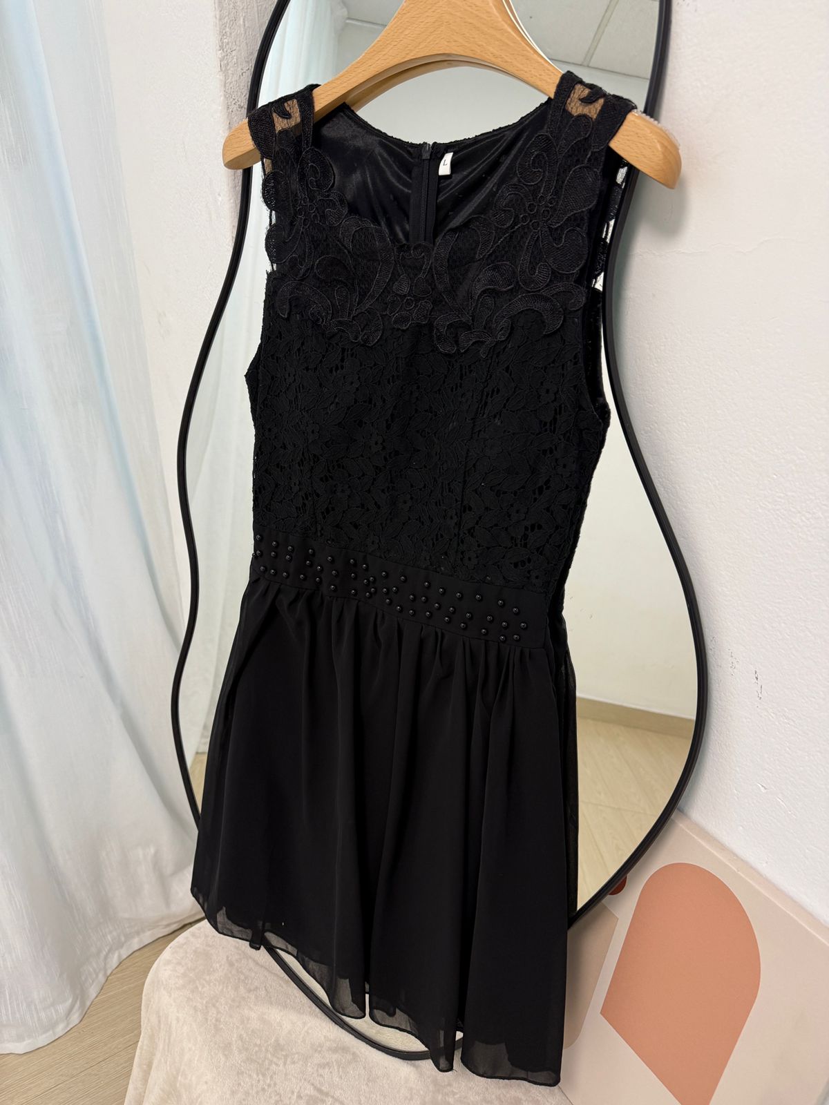 Vestido de gasa con encaje y cierre atrás. Disponible en talle M y L.